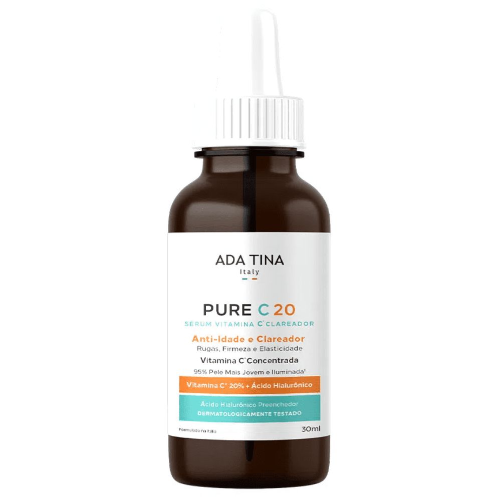 Ada Tina Pure C 20 Sérum 30ml é um sérum clareador anti-idade, formulado para o tratamento e clareamento de melasma grau 3, manchas escuras e manchas solares.