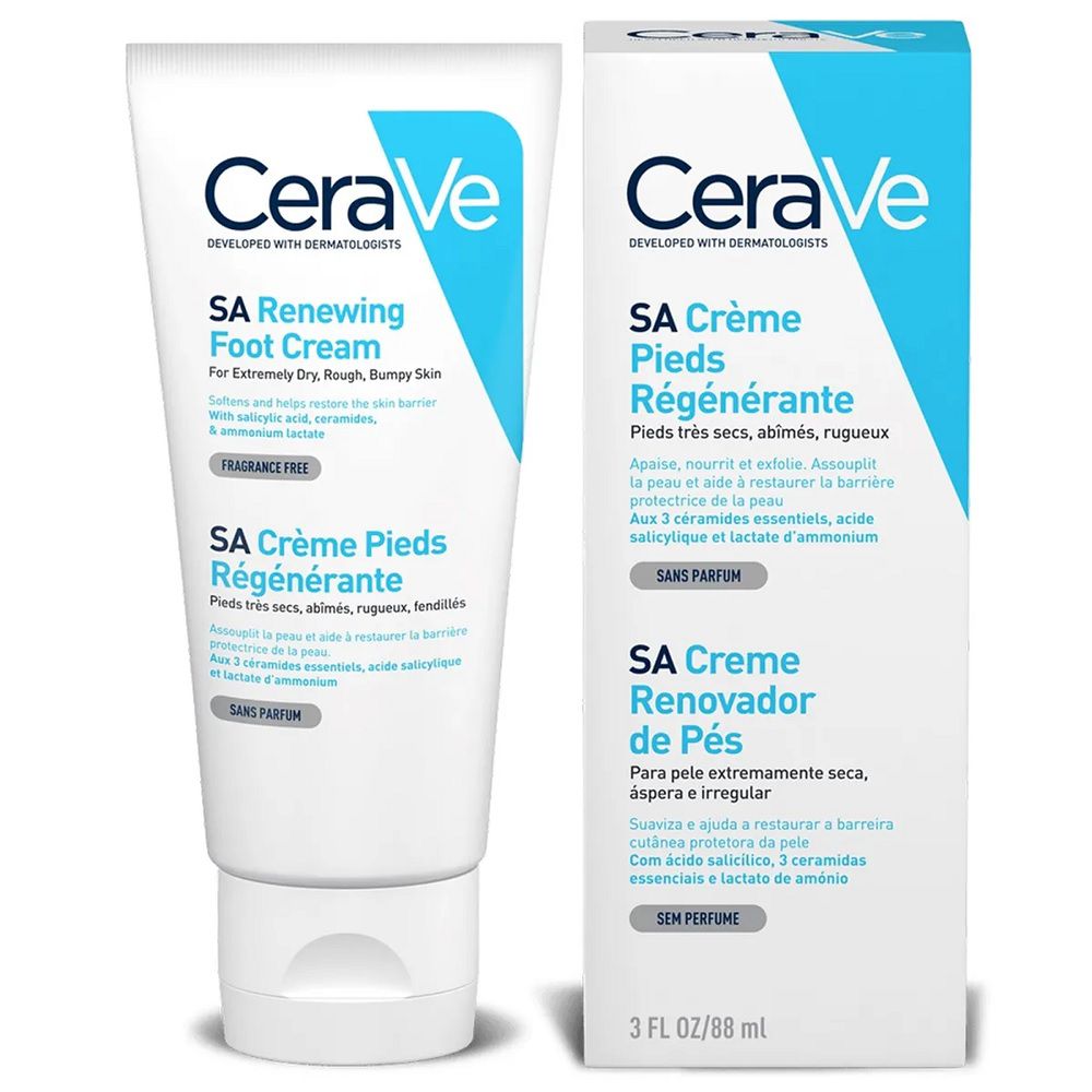 Creme Renovador para Pés SA CeraVe hidrata e ajuda a restaurar a barreira protetora da pele dos pés. Este creme não oleoso, de rápida absorção, com 3 ceramidas essenciais e ácido hialurónico, esfolia e hidrata os pés extremamente secos e ásperos para apaziguar e melhorar a textura da pele comprometida. Fórmula sem perfume adequada para pele sensível. Desenvolvido com dermatologistas.