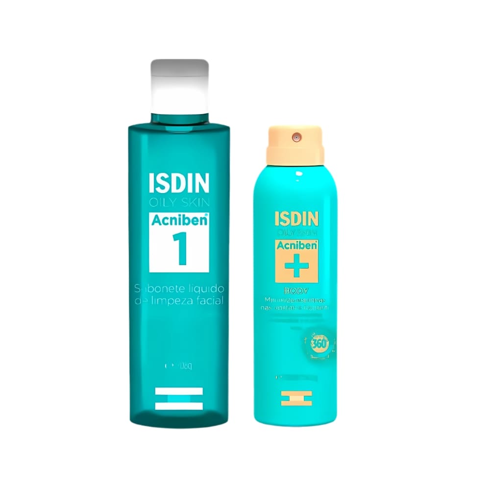 Isdin Acniben Sabonete Líquido Facial 208g + Spray Corporal Antiacne 150ml – Kit Antiacne Completo