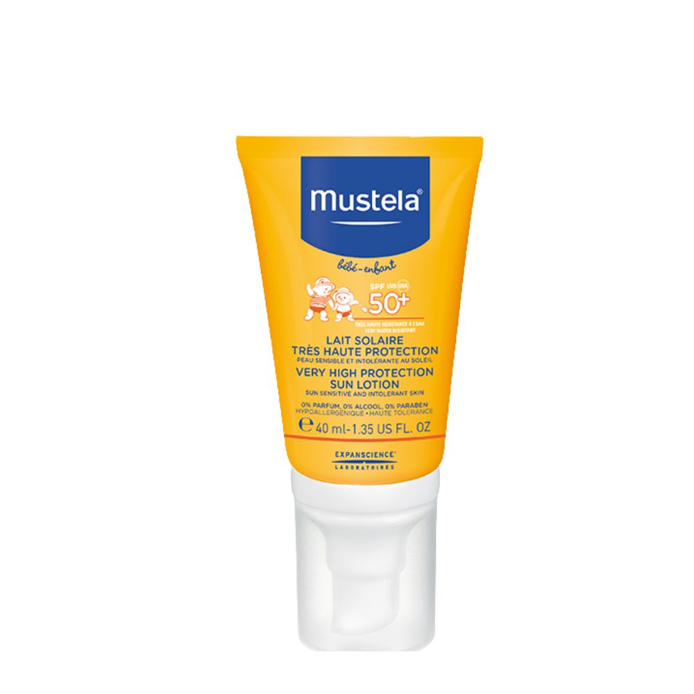 Mustela Protetor Solar Infantil Loção FPS50+ 40ml Protetor solar infantil em spray para pele sensível. Mustela Solaire Bébé-Enfant FPS 50+ protege da ação dos raios UV, além de ser resistente à água. Mustela Solaire Bébé-Enfant FPS 50+ fortalece a barreira protetora natural e mantém a saúde celular da pele do bebê desde o seu nascimento. Sua textura em leite é fácil de aplicar e de rápida absorção. Assim, você e seu bebê podem sair tranquilos para aproveitar o sol.